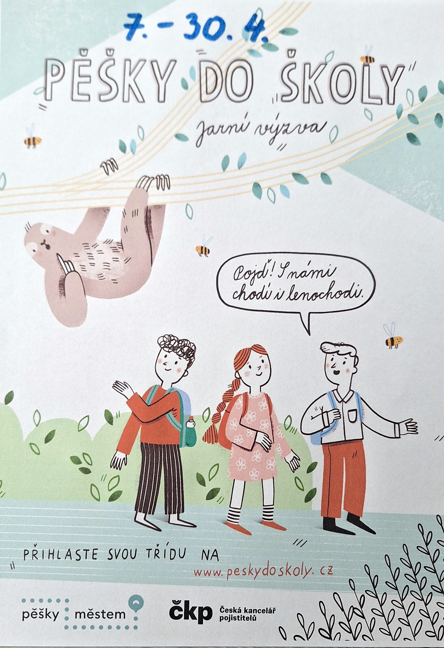 Zapojte se s námi do výzvy Pěšky do školy. Tato výzva probíhá od 7. dubna do 30. dubna. V tomto období budeme každý den budeme zaznamenávat do tabulky žáky, kteří dorazí pěšky 🙂