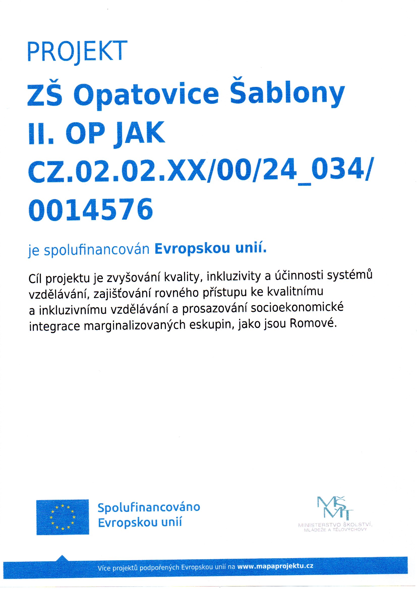 Název projektu: ZŠ Opatovice Šablony I. OP JAK